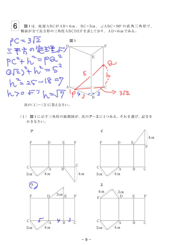 令和7年度 福岡県立高等学校入学者選抜学力検査問題 数学 問題6